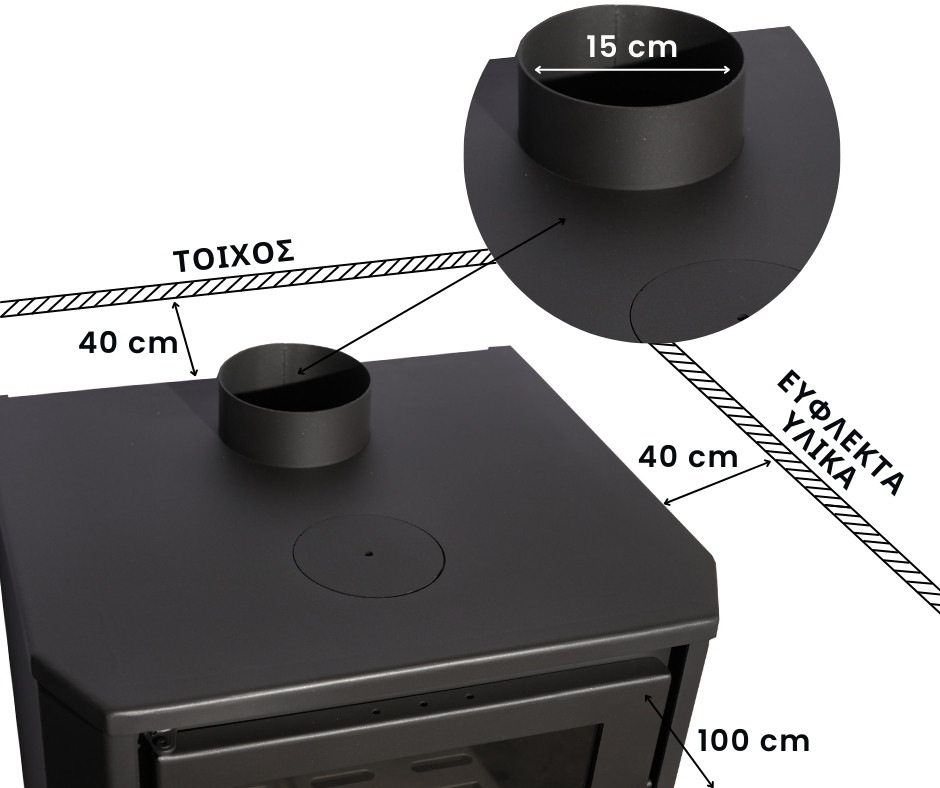 | Διάμετρος καπναγωγού (mm) | 150 |