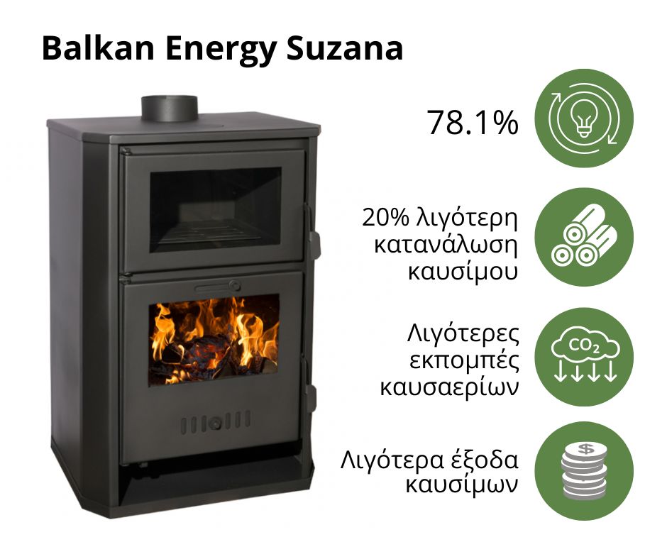 Ξυλόσομπα καλοριφερ με φούρνο Balkan Energy Suzana, 11.6kW - 17.5kW