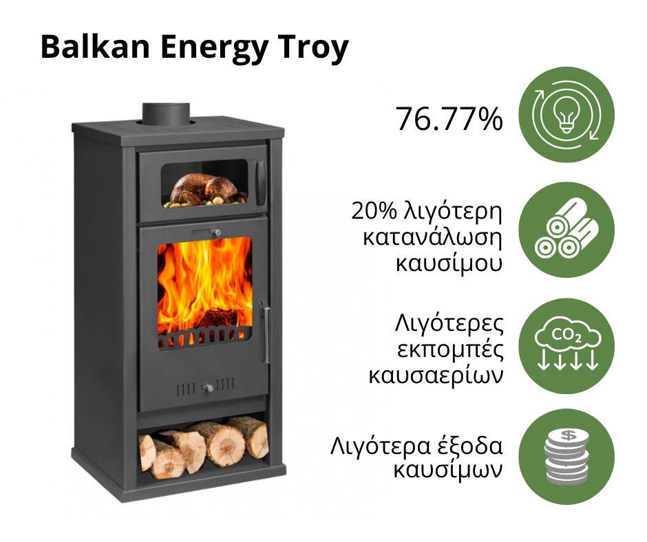 Ξυλόσομπα με φούρνο Balkan Energy Troy 7.8kW