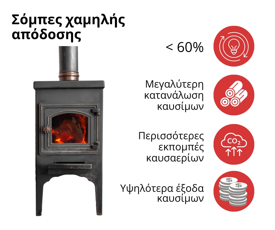 Ιδανικό για χώρους έως 50 τ.μ. , προσφέρει ισχυρή ζεστασιά και φυσική ατμόσφαιρα,